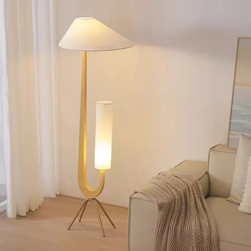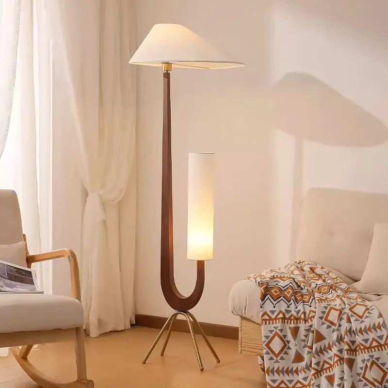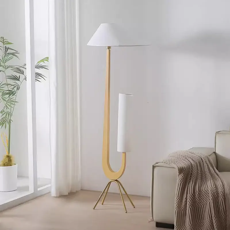The truly creative and artistic floor lamp is worth mentioning. It takes the shape of a giraffe as the inspiration for the lamp design. Through imitation wood grain spray painting, polishing, and other processes, and matching white trapezoidal and cylindrical lampshades, the entire floor lamp looks like a work of art. It would be a very wise choice to buy it and place it next to the sofa in the living room for lighting.