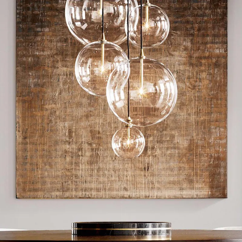 The delicate hand-blown glass spheres in our collection float on the end of a solid metal rod. Handcrafted by master glassmakers, each installation conveys fluidity and movement yet is grounded in its pure, modern architectural form.