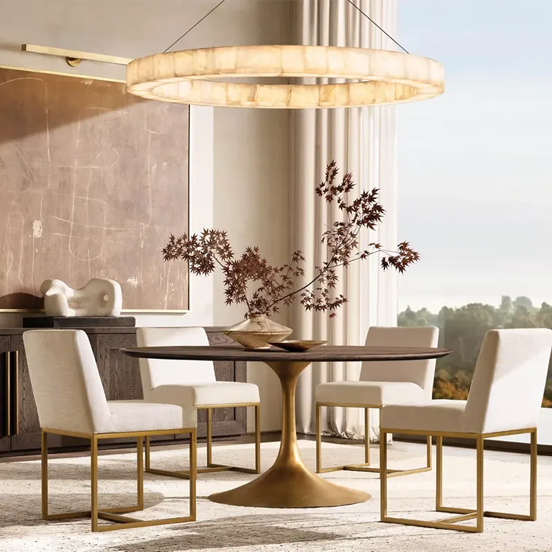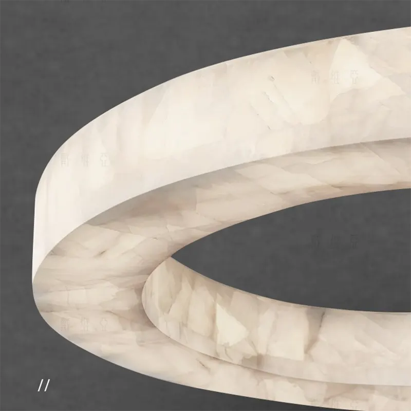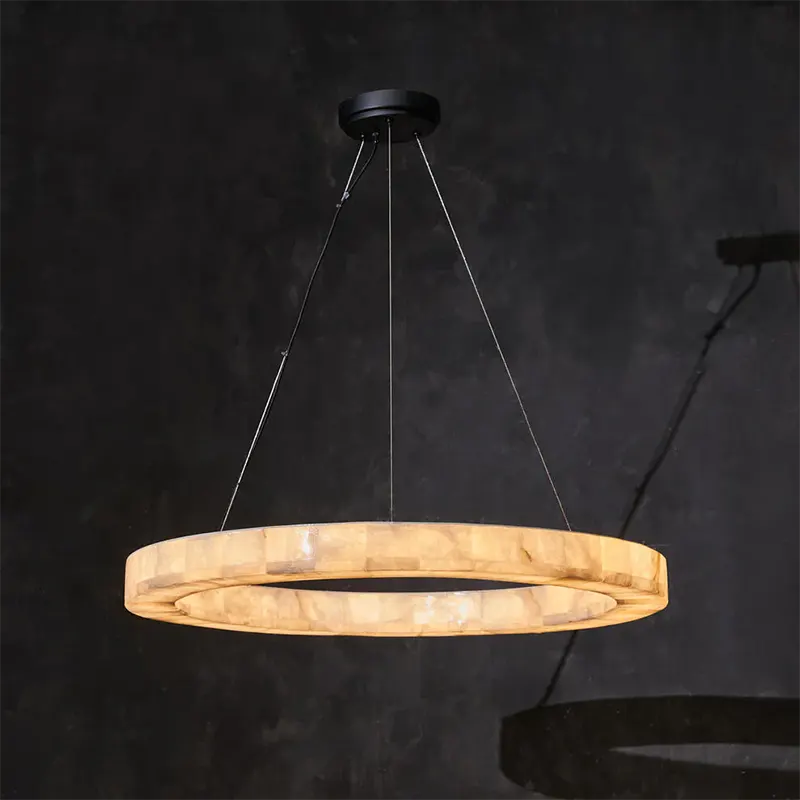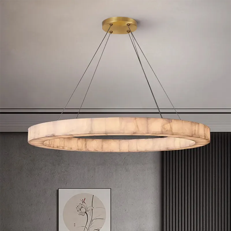 This modern marble chandelier is a perfect finishing touch to any room. Its sleek design is versatile and creates a stunning multi-point light source. It is the ideal fixture to enhance the ambiance of any space, with its eye-catching curves while providing effective lighting.